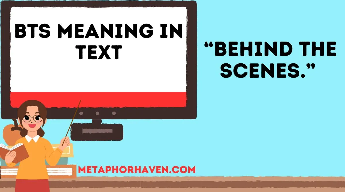 The term BTS is short, flexible, and widely used across the internet. In texting, it almost always means Behind The Scenes, showing the hidden or raw parts of a process